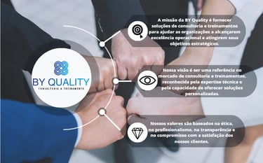 A equipe de trabalho da BY Quality possui profissionais capacitados, assim como estabelece parcerias com fornecedores de matéria-prima, embalagens, equipamentos, ERPs e prestadores de serviços. Essas parcerias são fundamentais para garantir a qualidade dos produtos e serviços oferecidos pela empresa. Os profissionais da BY Quality estão sempre em constante aprimoramento e atualização, buscando oferecer soluções eficientes e inovadoras aos clientes. Além disso, a empresa valoriza o relacionamento com seus parceiros de negócios, reconhecendo a importância de uma colaboração sólida e confiável. Com essa equipe qualificada e as parcerias estratégicas estabelecidas, a BY Quality se destaca no mercado como uma empresa de excelência, proporcionando produtos e serviços de alta qualidade aos seus clientes.